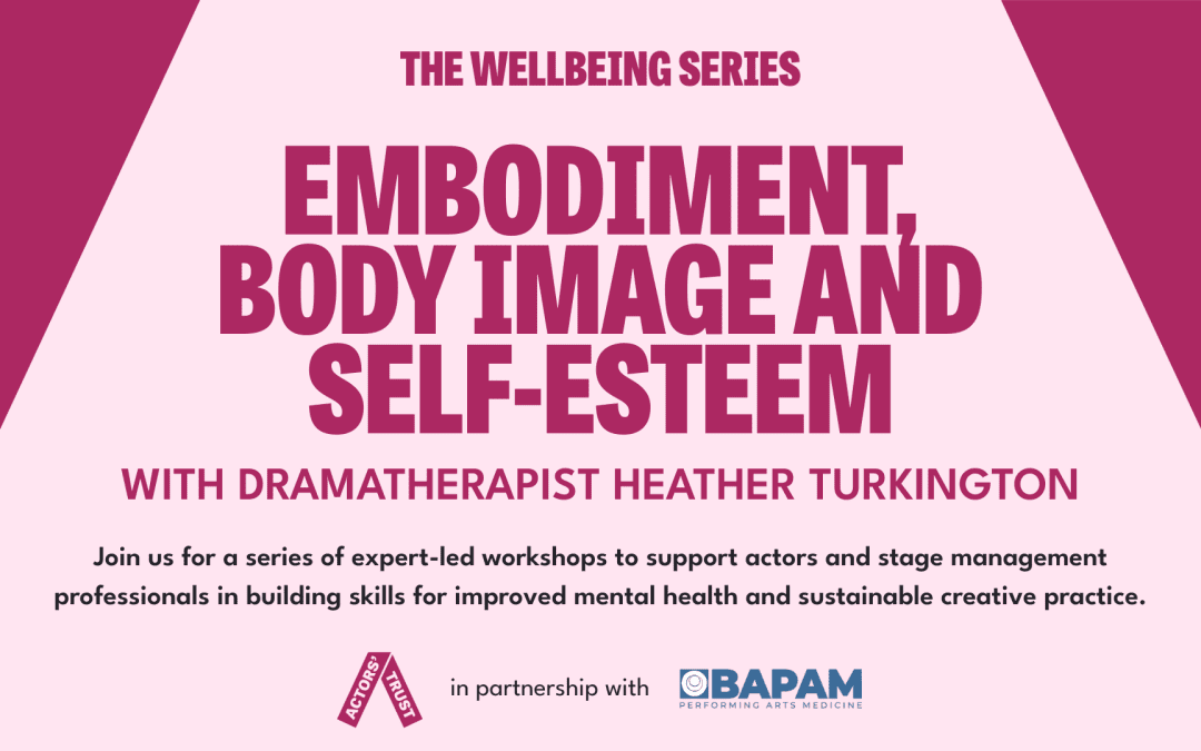 Being an actor or stage manager is physically demanding. However, the industry can be incredibly focussed on the look of that body. Constant monitoring and feedback on our body and our looks can take a toll on our self-esteem and lead to issues around body dysmorphia.